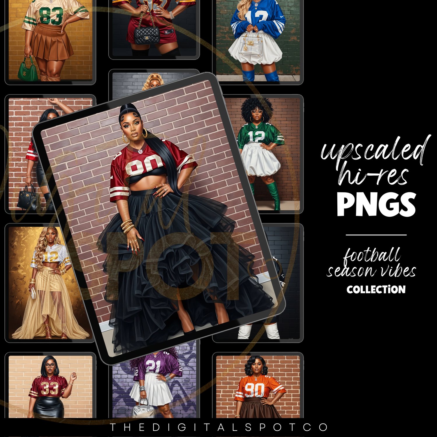 Football Season Vibes PNG Bundle - 16 Unique AI-Generated Black Women - High-Res Artwork